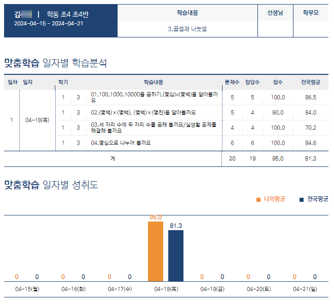 성취도 분석 표를 보면